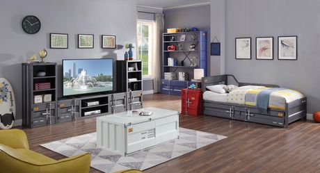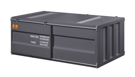Accent your living room in effortless style with the cargo coffee table. With a door that reveals a storage compartment, there is plenty of space for all of your accessories. Acme cargo coffee table, gunmetal, 47 x 29 x 18h, 84lbs. It is made up industrial metal and has a great gray color finish. Get it as soon as mon, aug 16.